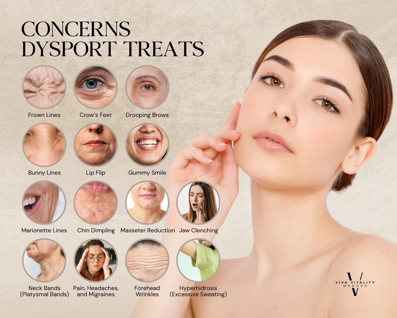 Most healthy adults who wish to minimize the appearance of fine lines and wrinkles are excellent candidates for Dysport. It’s ideal for those seeking a non-surgical, quick, and effective solution with no recovery time. You may also be a candidate if you experience tension headaches, jaw clenching, or hyperhidrosis. However, individuals who are pregnant, breastfeeding, or have certain neuromuscular disorders should postpone treatment. During your consultation at Viva Vitality MedSpa, our experienced team will review your health history, discuss your goals, and determine the safest and most effective approach for your Dysport treatment.