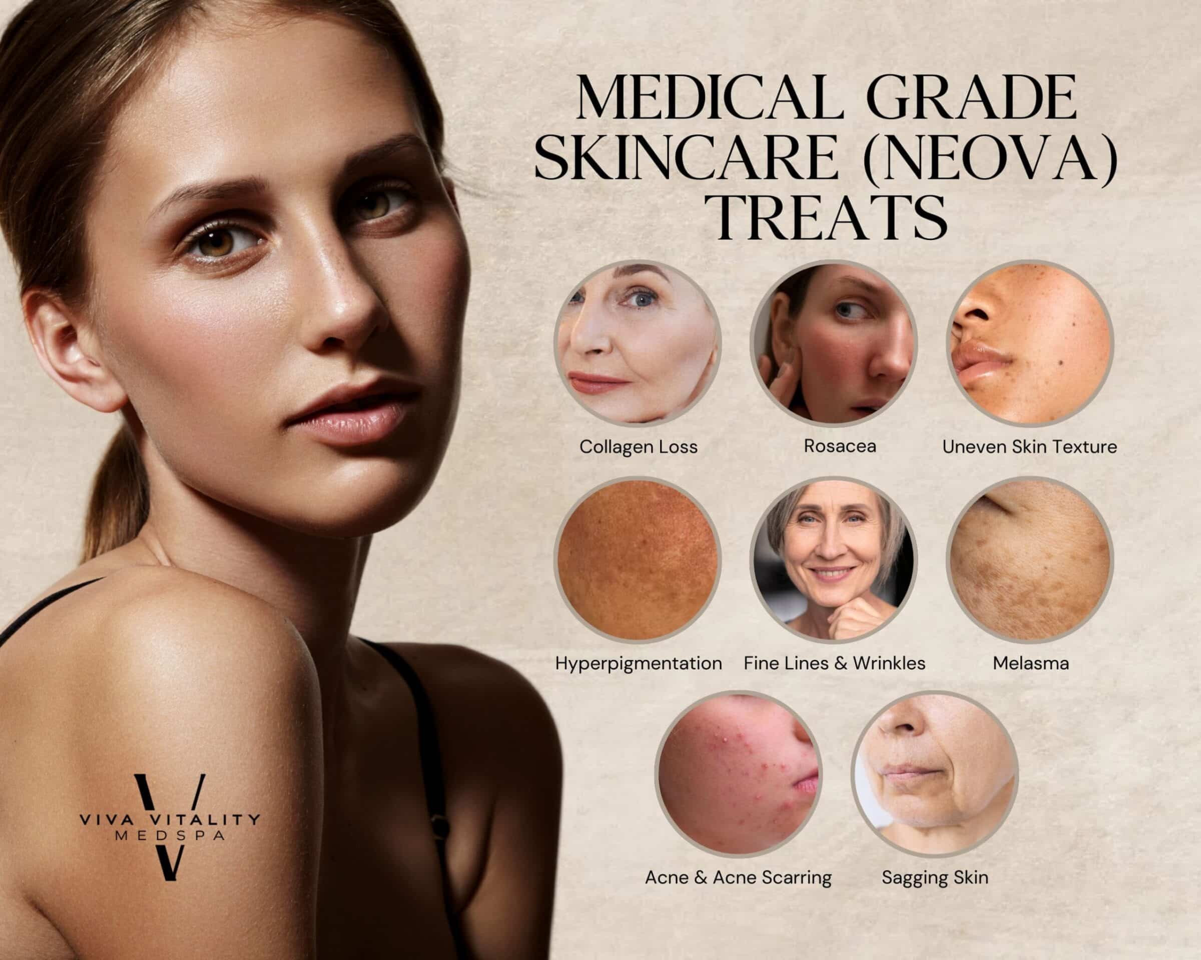 Your appointment begins with a skin analysis to determine the right Neova products for your needs. Treatments may include a layered application of antioxidant-rich serums, DNA repair enzymes, and retinols applied in-office or recommended for at-home use. The process is gentle, with no discomfort. You may feel a light tingling sensation as active ingredients begin working. Results develop gradually, with skin often looking clearer and more radiant within a few days.