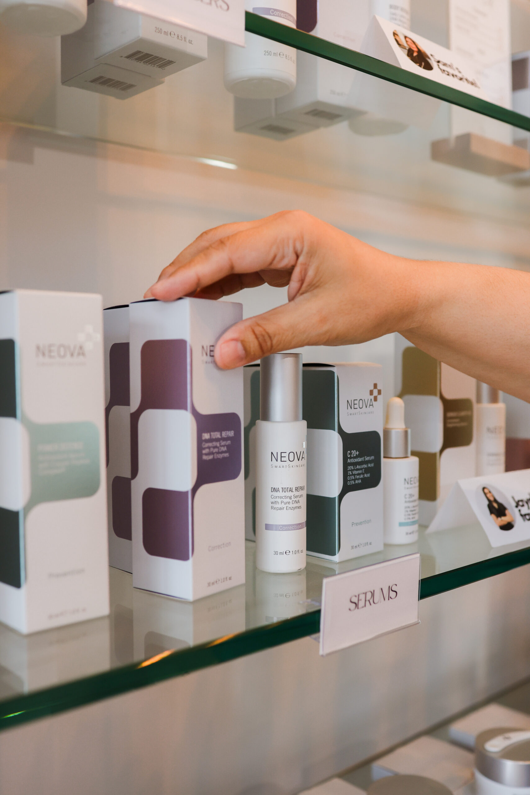 Your appointment begins with a skin analysis to determine the right Neova products for your needs. Treatments may include a layered application of antioxidant-rich serums, DNA repair enzymes, and retinols applied in-office or recommended for at-home use. The process is gentle, with no discomfort. You may feel a light tingling sensation as active ingredients begin working. Results develop gradually, with skin often looking clearer and more radiant within a few days.